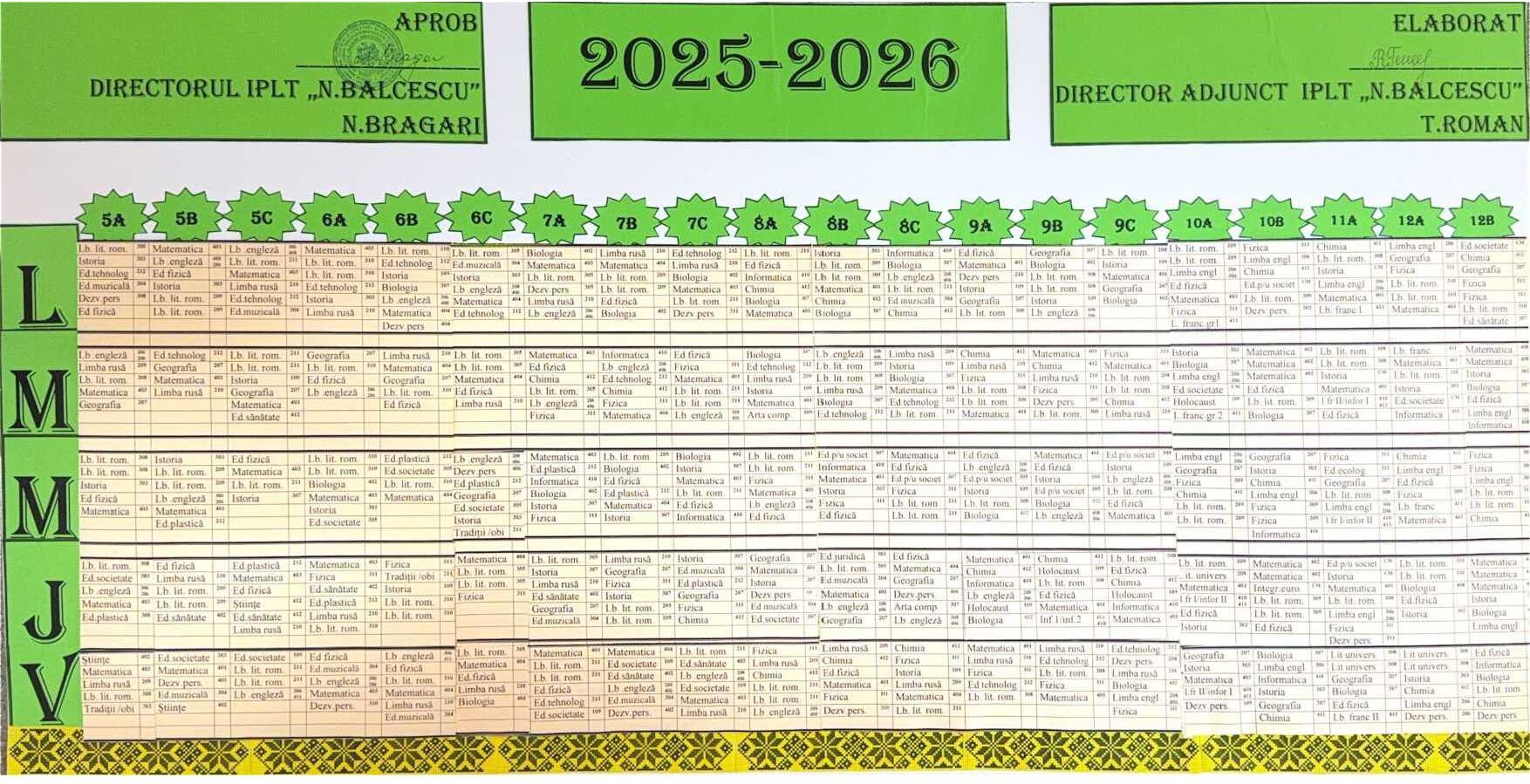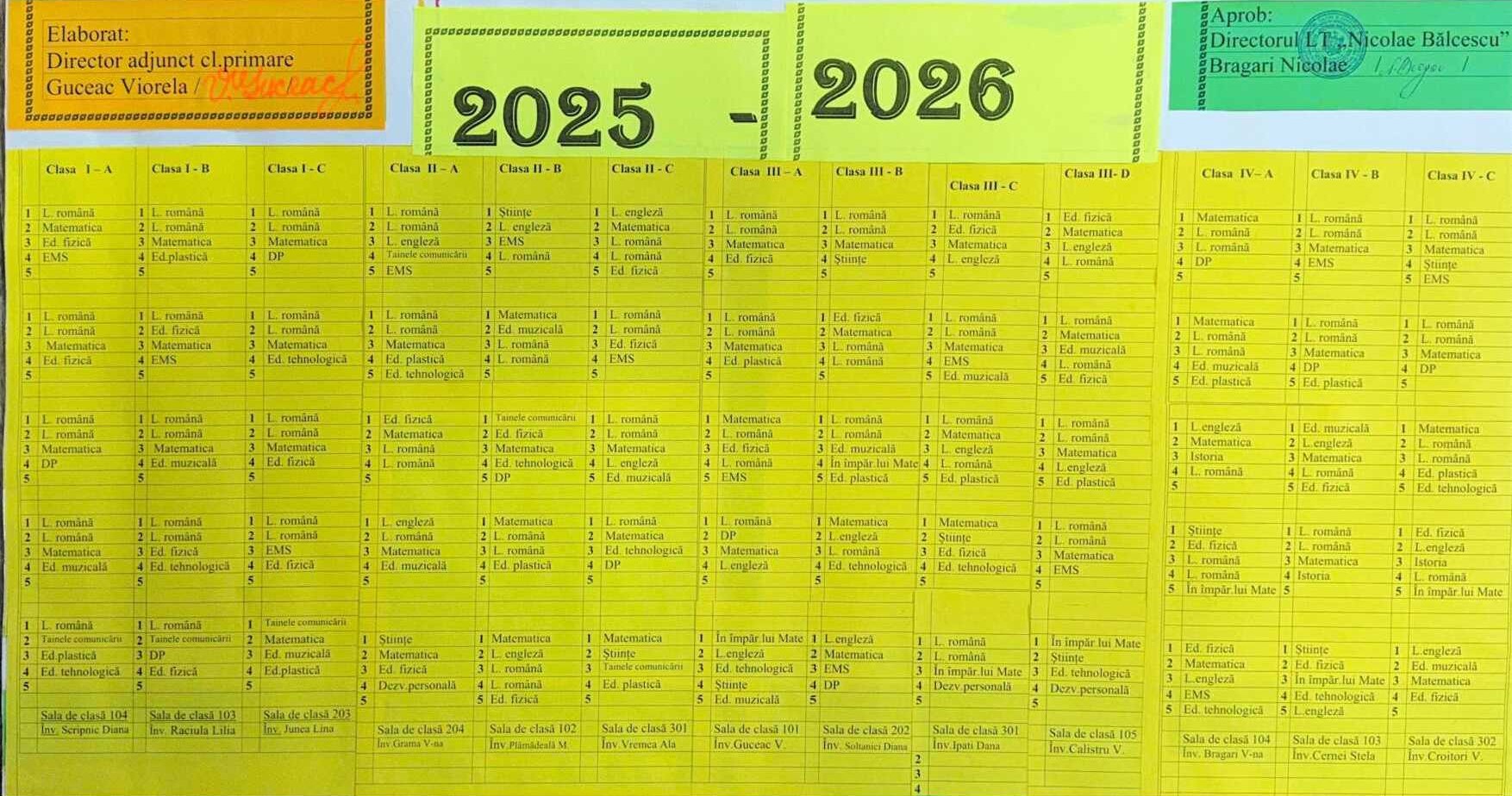 Orarul lecțiilor